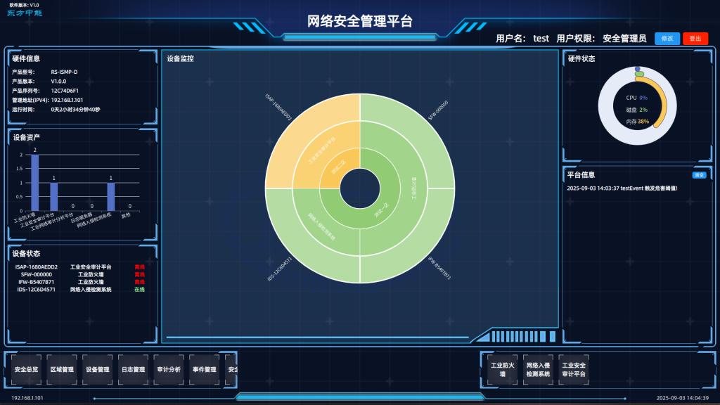 工业数字化转型加速期,工业网络安全成为保障关键基础设施稳定运行的“生命线”。东方自控深耕工业网络安全领域,打造“磐御”系列新一代网络安全产品,凭借全链路防护架构、自主核心技术、全品类产品矩阵、场景化落地能力四大优势,为能源电力、生产制造、冶炼化工等关键行业提供高可靠、全维度安全解决方案,成为工业企业数字化转型的 “安全护航者”。全链路:一个中心、三重防护”架构实现全场景立体防护工业网络就像一座“...